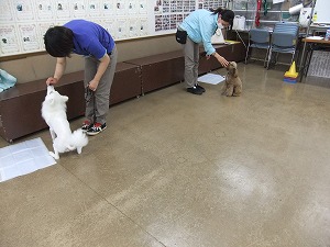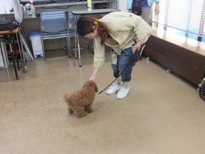 5月23日 近づいたら…。 人が近づいてきたらぴょんと飛びついてしまう子がとっても多いです!ですが、できたらもずくちゃんのようにオスワリしてほしいですよね♪ どうやったらできるようになるのでしょうか? 詳しくはスクールの授業をお楽しみに^^