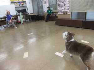 6月30日 テイク&ドロップ!! K9というゲームの実演をしている、マックス君! ゲームの内容の説明と実演。また、JAHAという協会の試験の実演などをして くれました。 どんどん勉強していけば愛犬と一緒に大会に出たり、試験を受けたりできます。お利口わんこを一緒に目指しましょう★