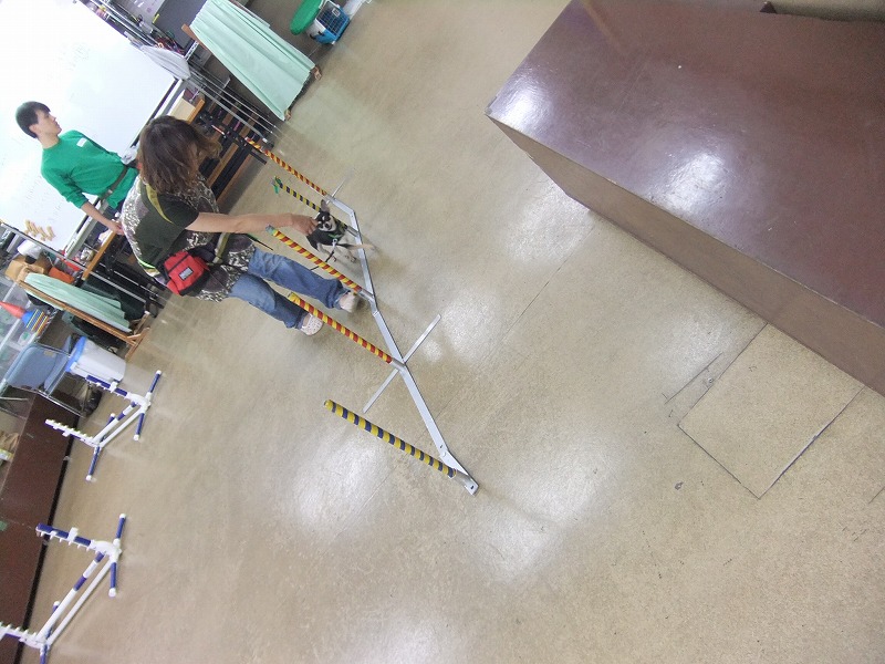 7月4日 どこを通る? アジリティーのトレーニングに挑戦しました! このスラロームは、ポールを順番通り交互にくぐらなくてはいけません。 授業では、ポールをとばさず、スムーズにくぐるための誘導のコツが聞けます^^♪ しじみちゃんは上手にできたかな?