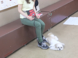 8月1日 スクール中のマナー スクールでは、イスに腰をかけた時はこのように犬のリードを短めに踏むことを約束事としています。 リードを短めに踏むことで犬の行動を制限できるので、ワンちゃんも落ち着きやすくなります^^ ドッグカフェなどでも是非実践していただきたいマナーですね☆