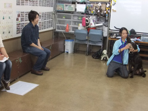しつけ教室DOGLY内のトリマーさんと愛犬のロイちゃんに、口輪のつけ方を教わりました。