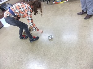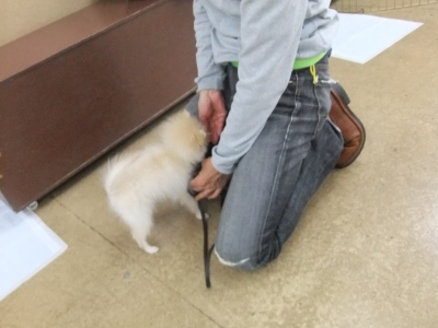 ステップ2(ひよこコース)最終授業で受けられる家庭犬マナーチャレンジの項目にある足拭き。